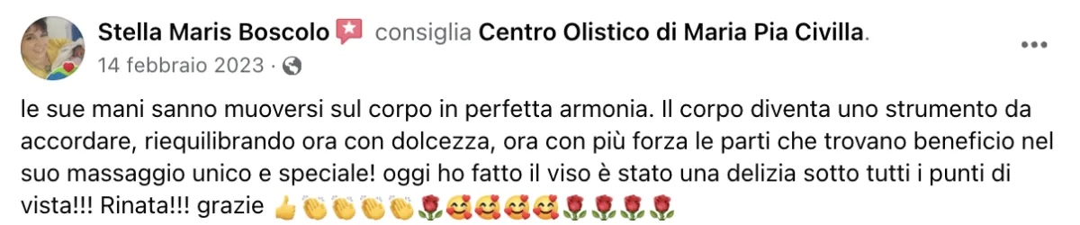 1987 - Percorso professionale con Lucia Torri Cianci durato ben oltre 20 anni dove ho acquisito qualsiasi metodica di massaggio.